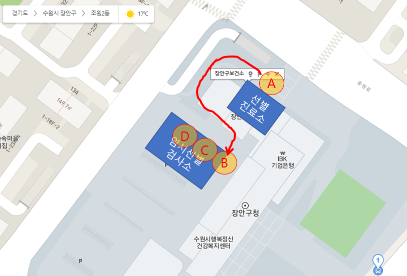 운영시간에 맞추어 '장안구 보건소'를 가 보았습니다.