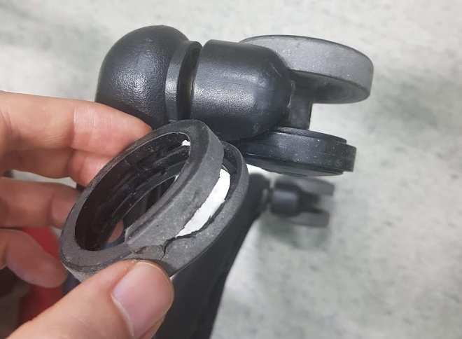 연구실에서 일을 하다 보니, 바퀴의 타이어(?)가 하나 망가져 있었습니다.