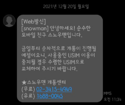USIM 은 가지고 있다가, 스노우맨에서 전화가 오면 반송할 예정입니다.