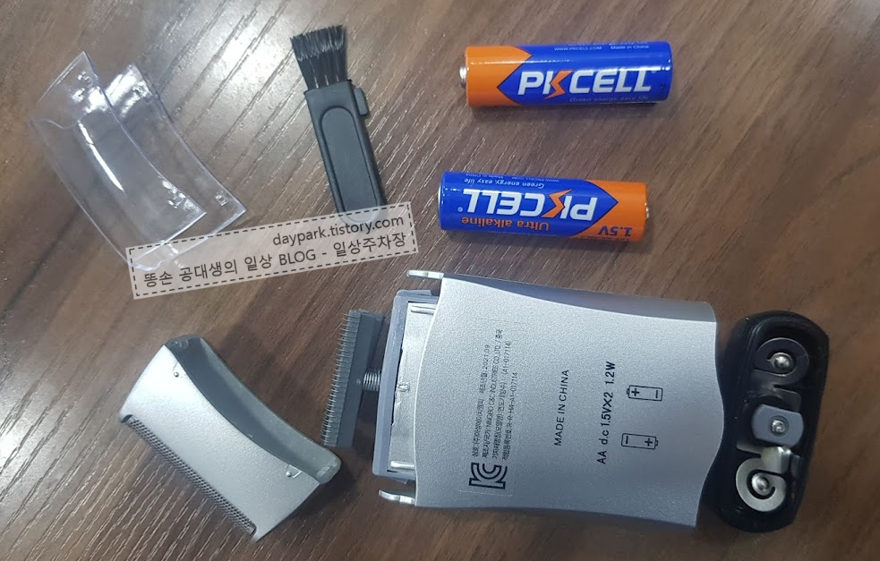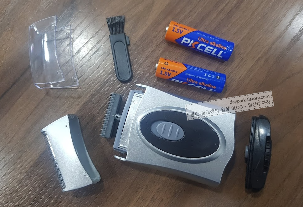면도기 크기에 따라 AA 배터리 두개 또는 세 개가 들어가구요.
