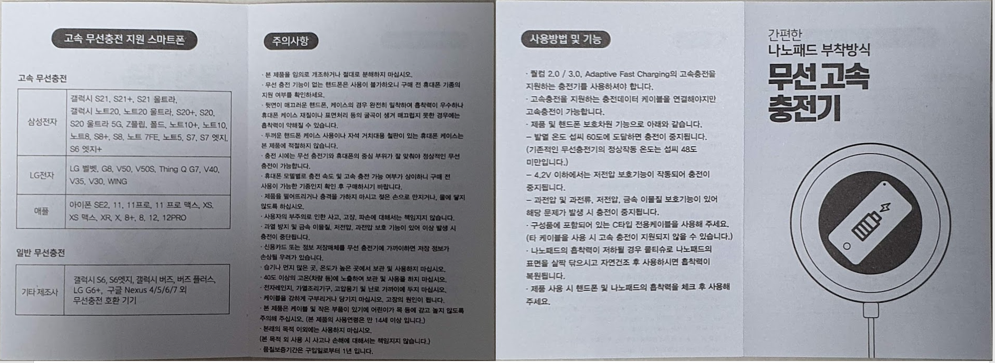 여기까지 '나노패드부착방식 무선고속충전기'의 개봉기였습니다.