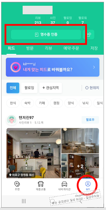 '네이버 영수증 인증' 을 합니다.