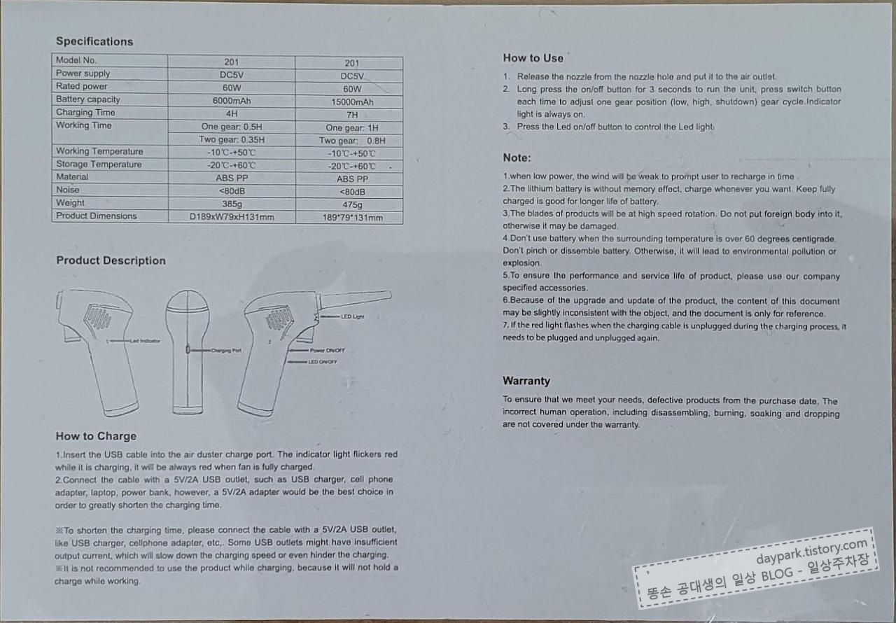 사용해보니 성능은 'PC 청소용 에어스프레이' 를 대체할 만큼 충분히 강력합니다. 털이개로 털지 않아도 먼지가 말끔히 제거되었습니다. 15000mAh의 경우 한시간이나 사용 가능하니 어디서나 편리하게 사용 가능해 보입니다.