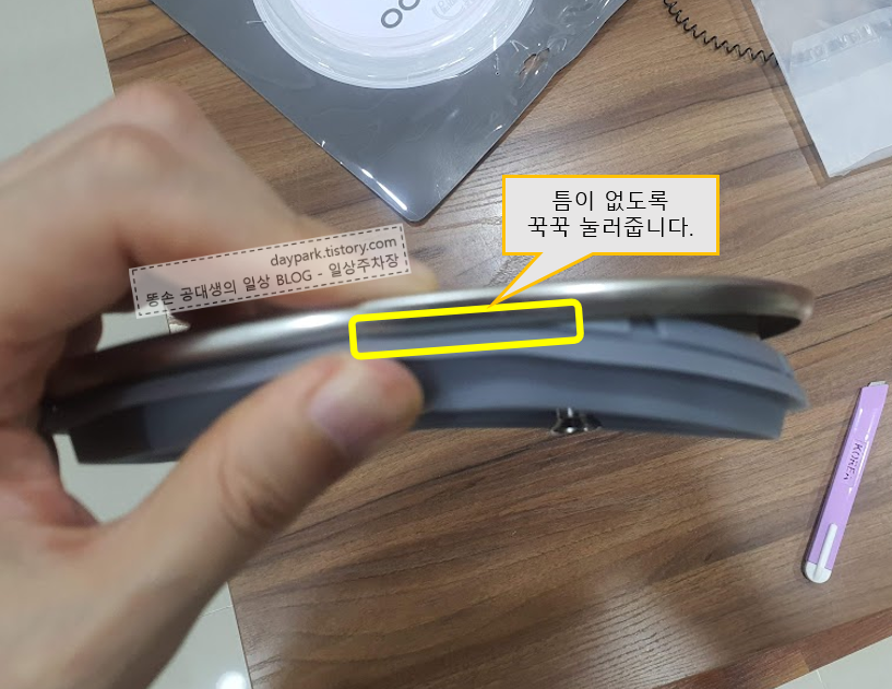 이제 새 것을 조립해 줍니다. 아래와 같이 한바퀴 빙 돌면서 꾹꾹 눌러주면 됩니다.