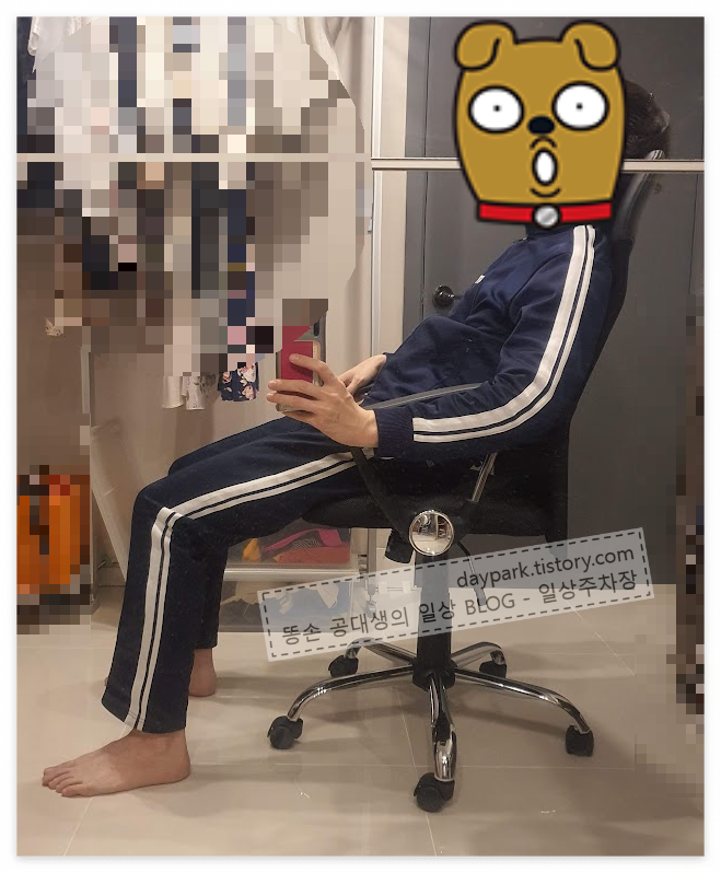 의자는 매우 편하고 좋았습니다. 키 180 기준으로 사진을 몇장 찍어보았습니다.