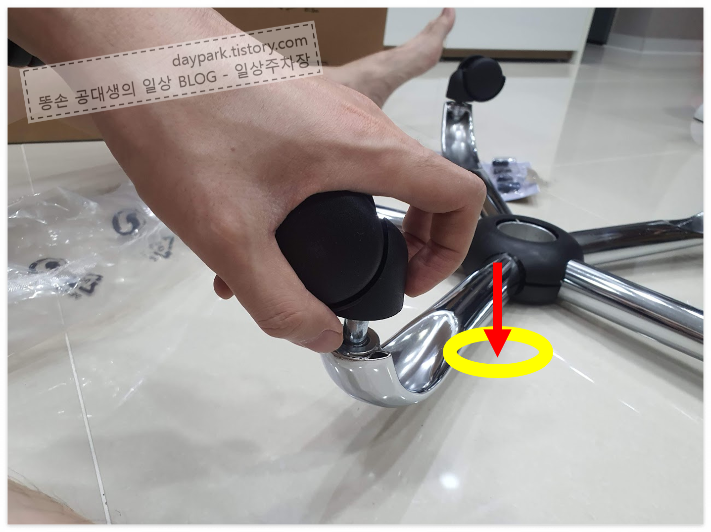 하단 바퀴는 힘을주어 꾹 눌러주시면 잘 들어갑니다.