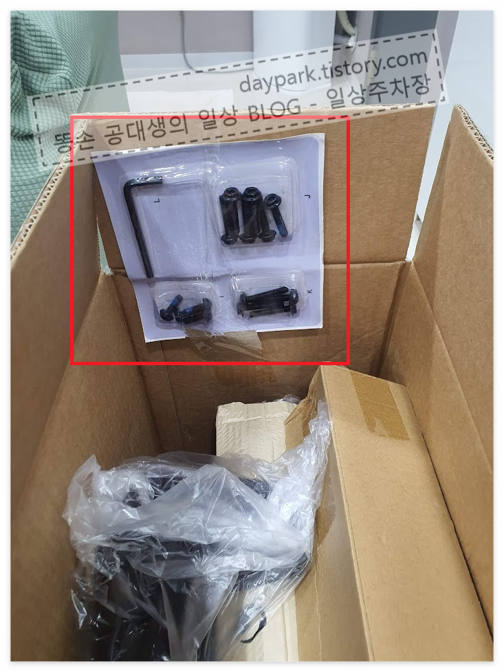 아래와 같이, 여기저기 굴러다닐 수 있는 나사들을 테이프로 붙여 놓은건 칭찬하고 싶네요.