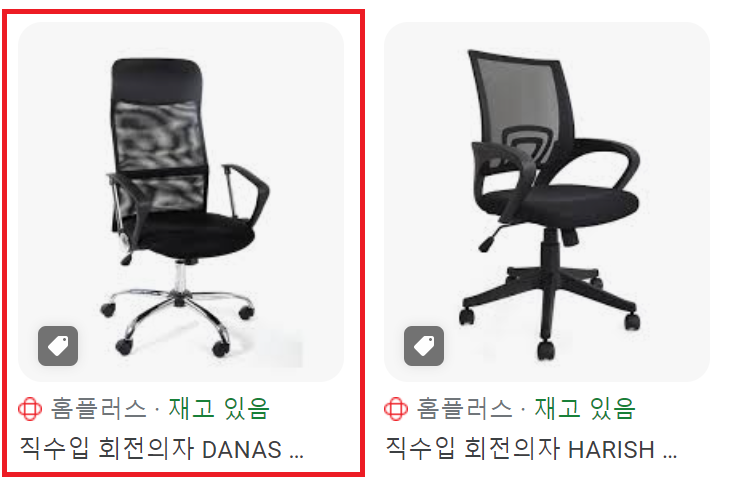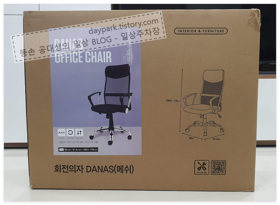 홈플러스에 바퀴달린 의자를 사러 갔습니다. 홈플러스에서 주로 파는 회전의자는 아래 두가지가 있습니다. 저는 피곤할때 머리를 기대고 싶어서 왼쪽의 DANAS 의자를 선택했습니다.