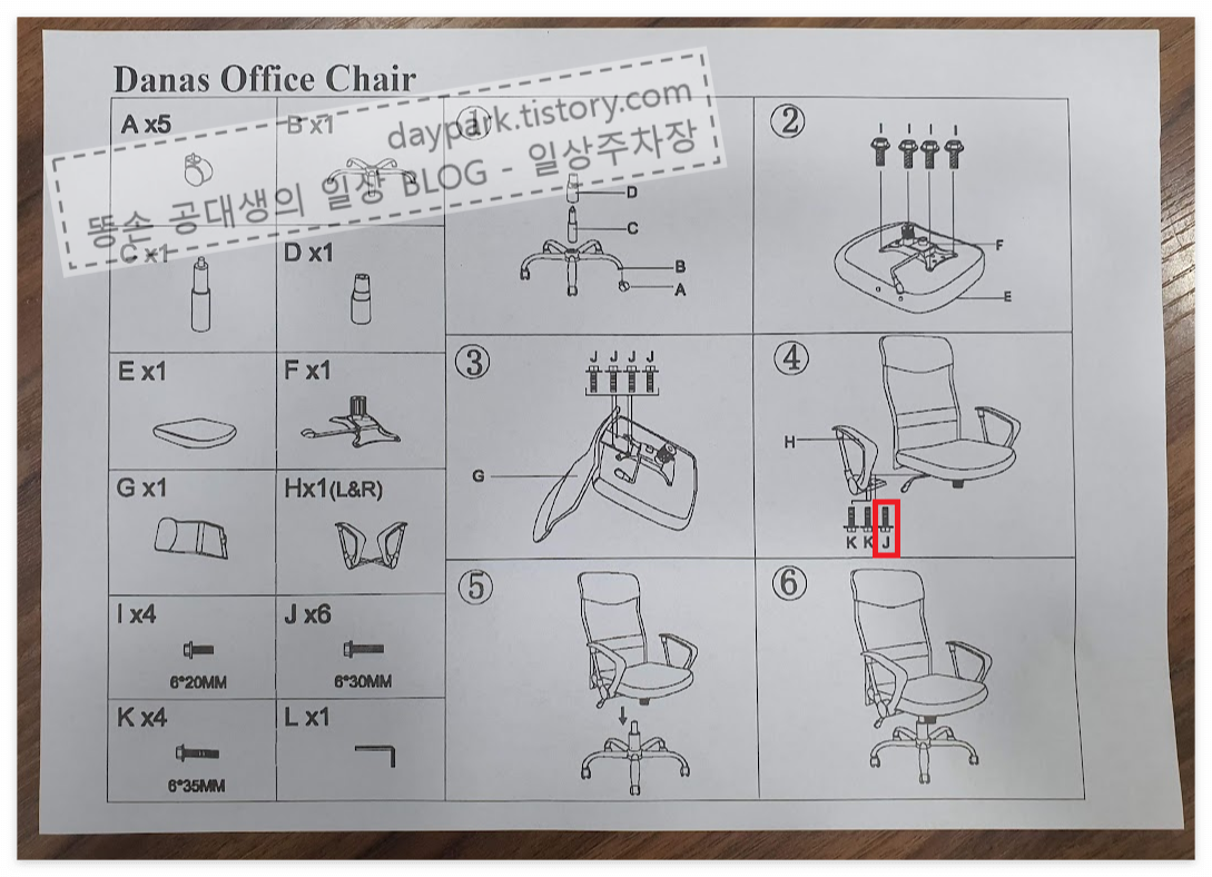 설명서는 아래와 같습니다. J나사의 쓰임새에 주의하세요.