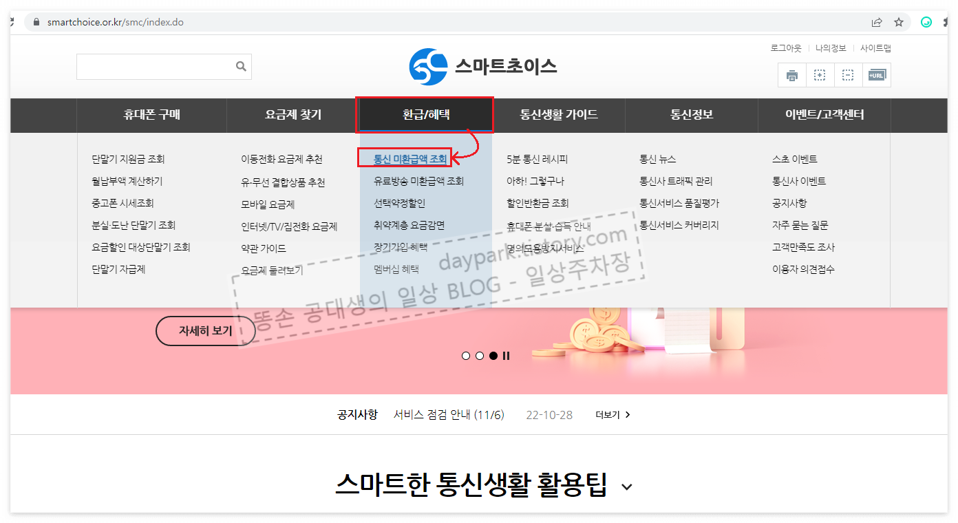 통신관련 마환급금은 정부24사이트에서 신청할 수 없고, 스마트초이스 라는 사이트에서 신청하시면 됩니다.