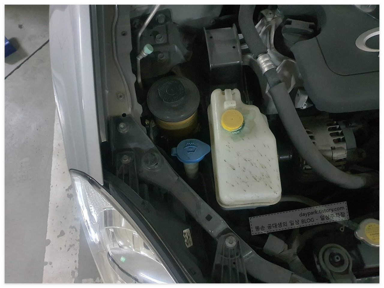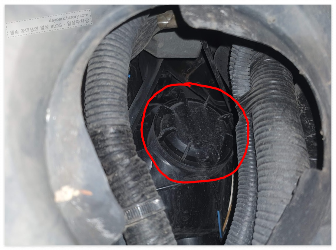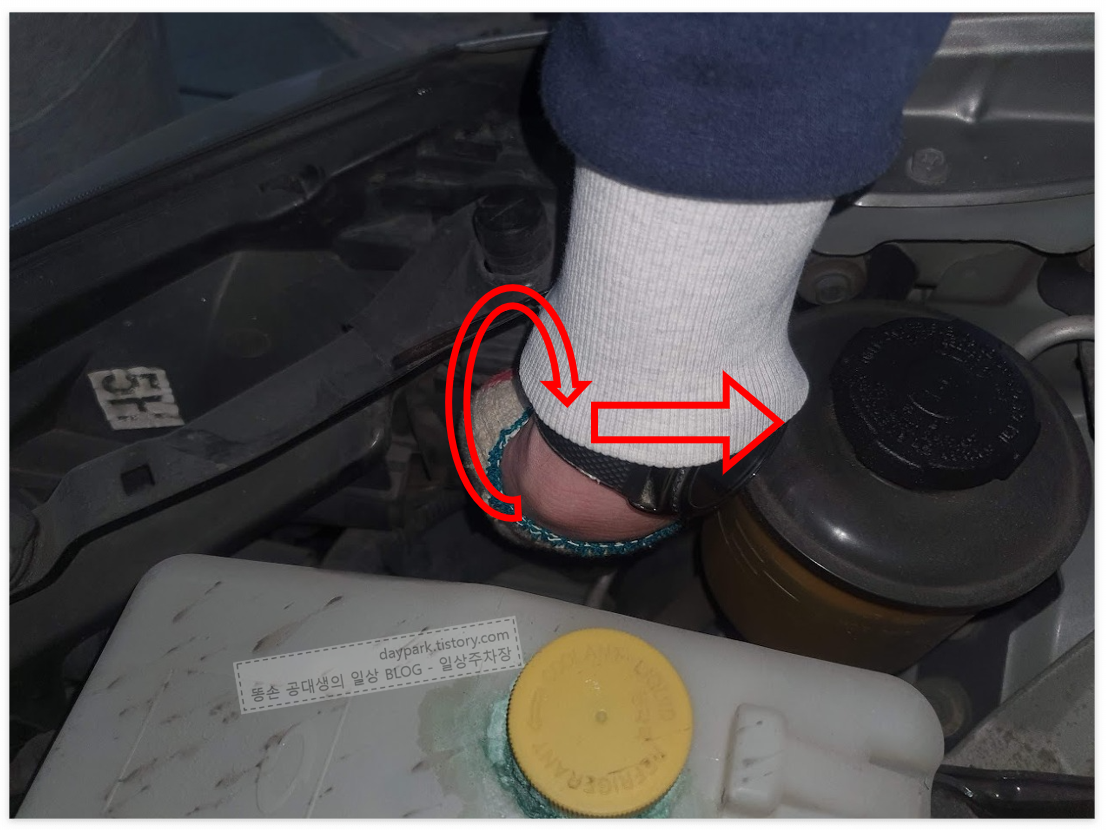인터넷 영상을 보면 냉각수 통을 탈거하라는 말이 있습니다. 실제로 해보니, 좁긴 하지만 냉각수 통을 탈거하지 않고 작업이 가능했습니다.