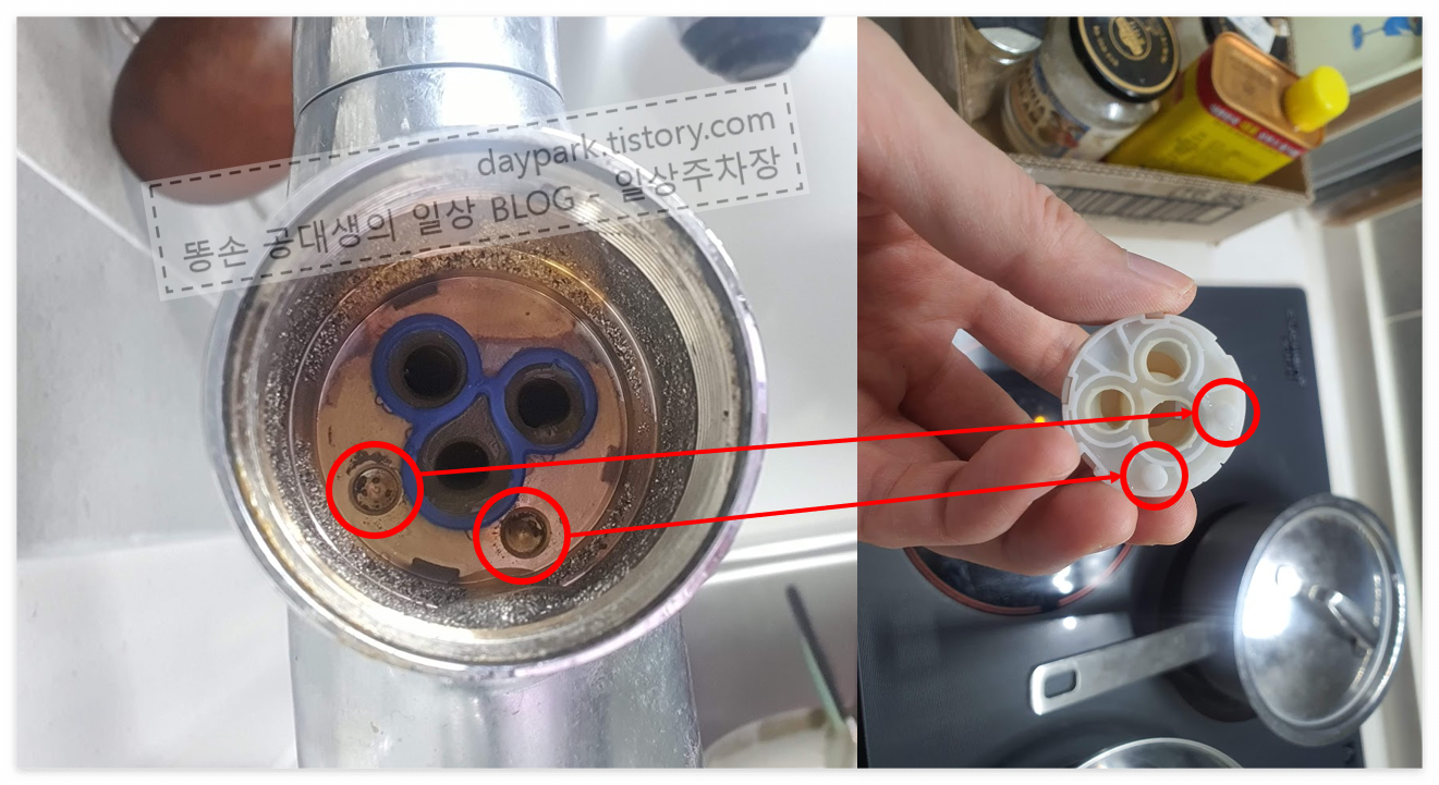 설치하고 6년째 사용하는 중입니다. 물을 꼬옥 잠가도 조금씩 조금씩 물방울이 떨어지기 시작했습니다. 지금은 똑 똑 똑 똑 물이 새고 있어서 한번 수리를 알아보았습니다.