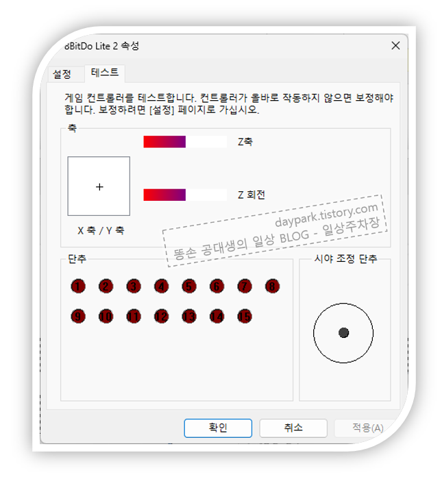 탐색기에서 선택하여 조이스틱 테스트를 할 수 있습니다. MAME와 같은 에뮬레이터 게임도 잘 동작하였습니다.