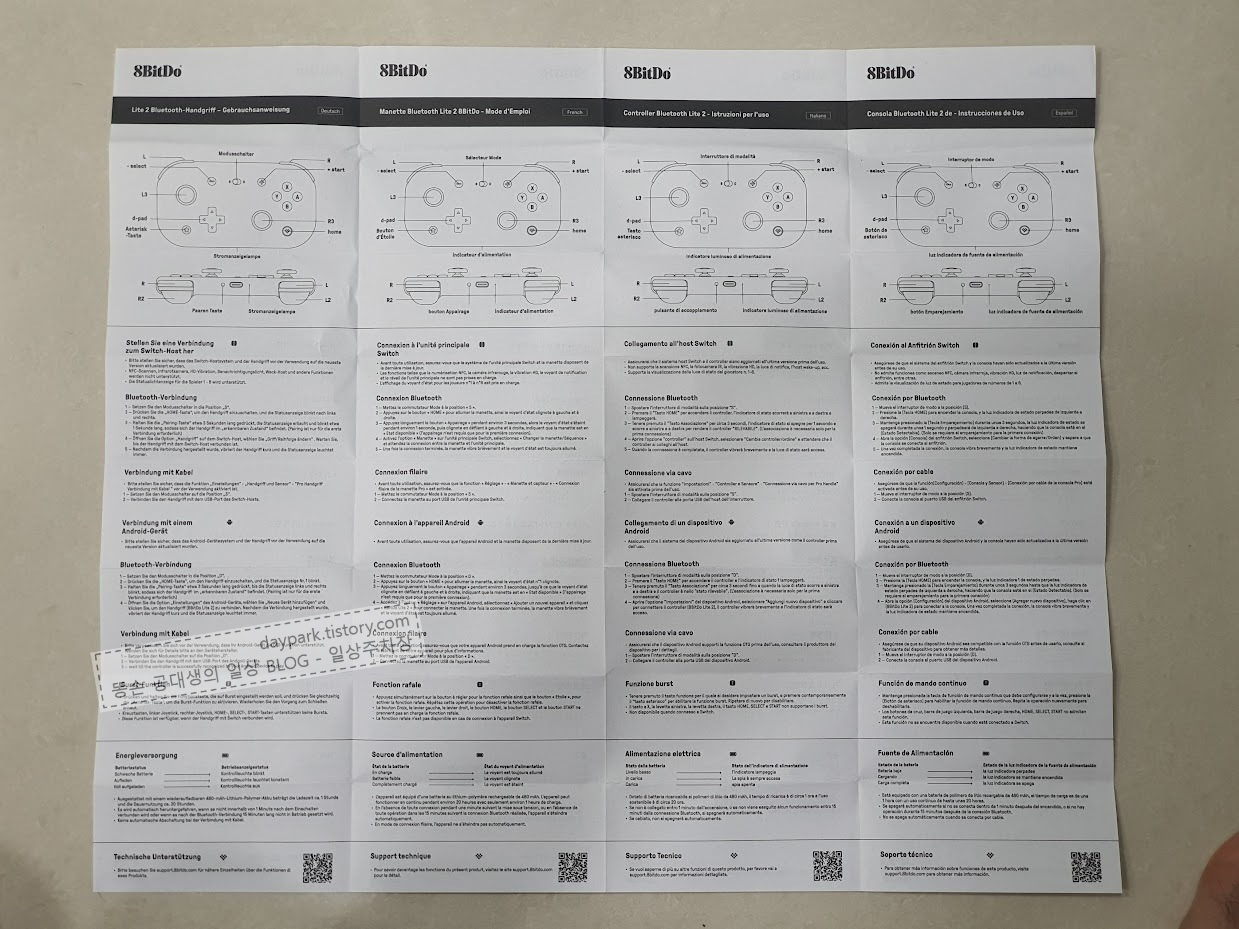 설명서 사진을 크기가 크기 때문에, 아래 '더보기'를 클릭하면 보실 수 있습니다. 설명서에는 한국어도 포함되어 있습니다.