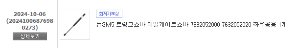인터넷에서 '트렁크 쇼바' 또는 '테일게이트 리프터'라는 이름으로 검색해 부품을 구입했습니다. 사진에 있는 번호대로, 부품 번호 76320-52020번이 뉴SM5용 부품이 맞았습니다. 제가 탄 차량의 경우는 아래의 것을 11번가에서 구입하였습니다. 링크를 넣으면 광고가 될 것 같으니 이미지만 남깁니다.