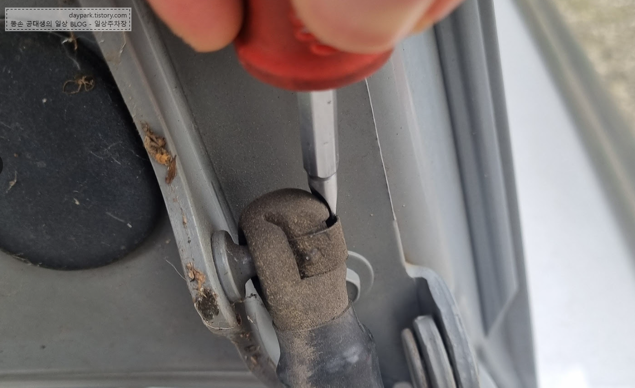 일자드라이버를 사용해 접속 부분의 움푹 들어간 곳을 밀면 부품이 쉽게 빠집니다. 위아래 연결부 모두 동일한 방법으로 탈거할 수 있습니다.
