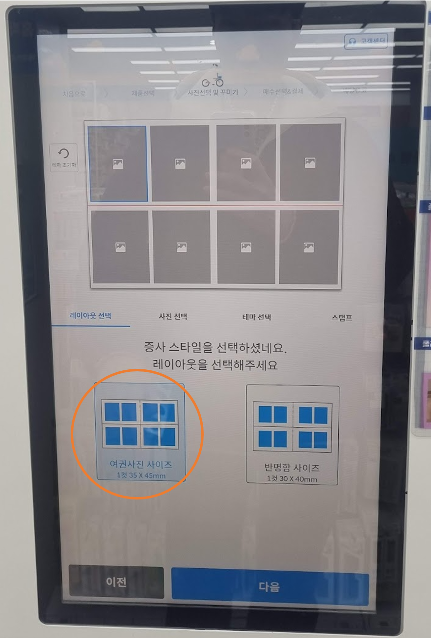 그 다음 화면에서, 여권사진 또는 반명함사진을 선택할 수 있습니다.