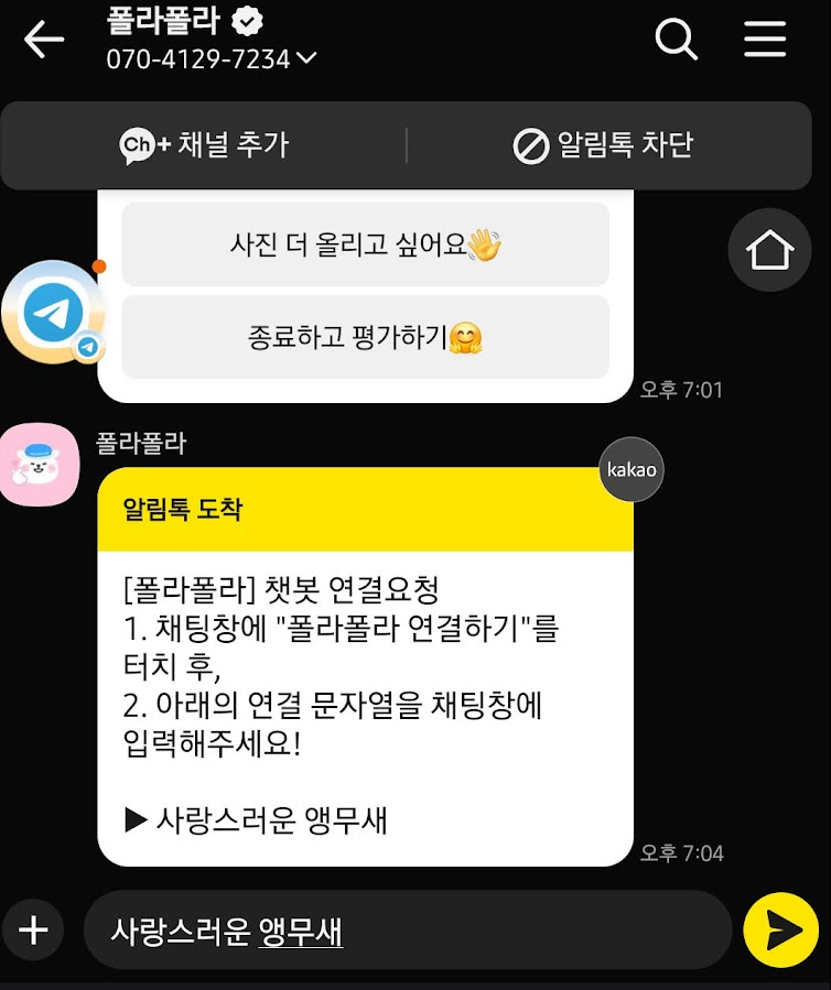 암호문자 입력이 끝나면, 카톡으로 이미지를 전송해달라는 요청이 옵니다.