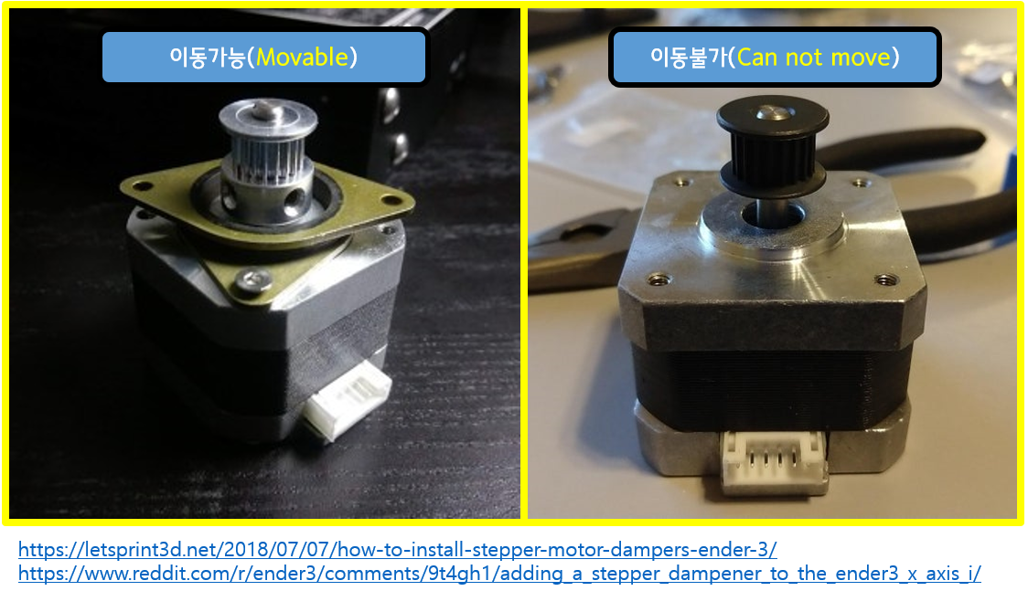 Y축의 경우, 댐퍼를 설치하면 모터와 베드가 충돌합니다.