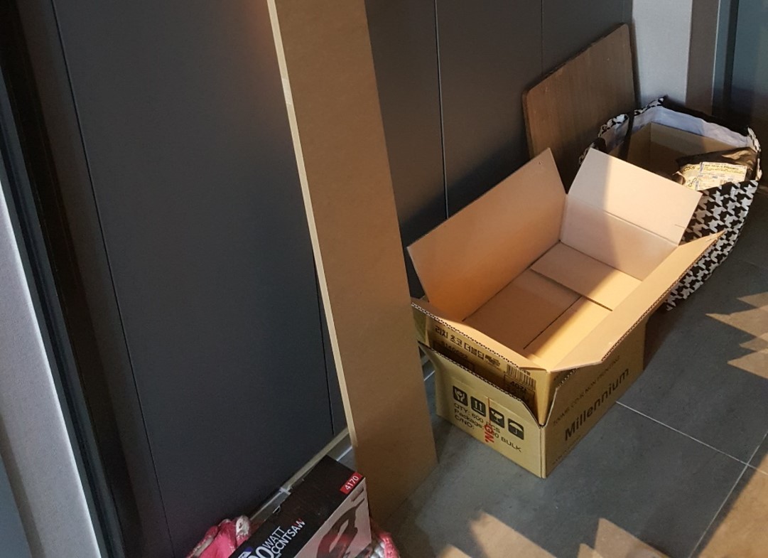 이 기둥은 몇달 전부터 있던건데, 분리수거 스티커를 붙이지 않았다고 안치우더군요.