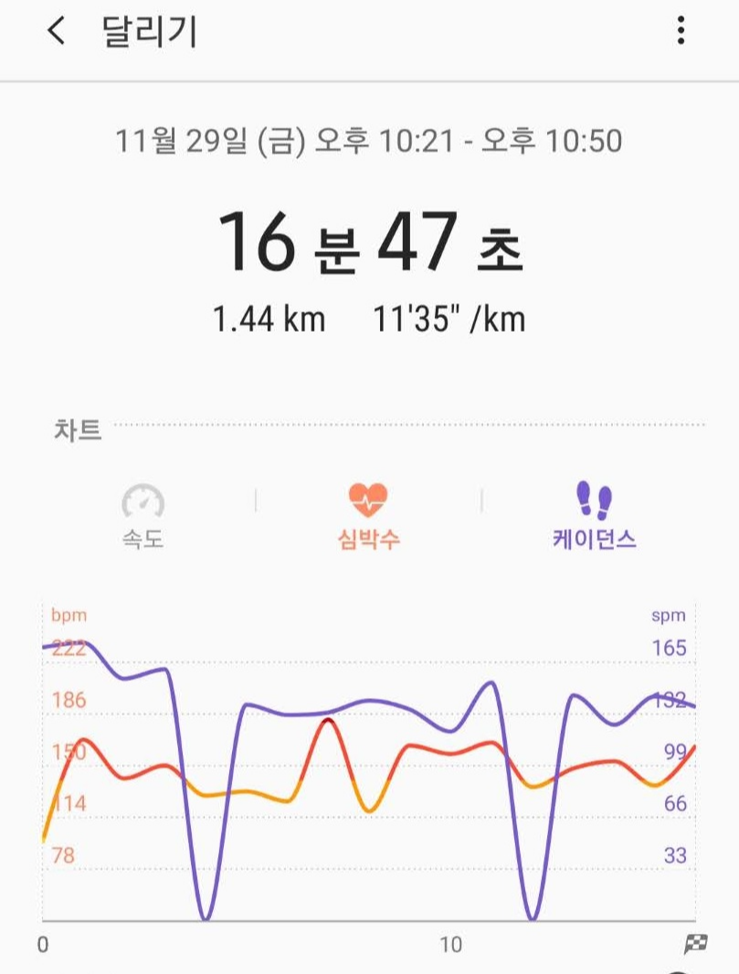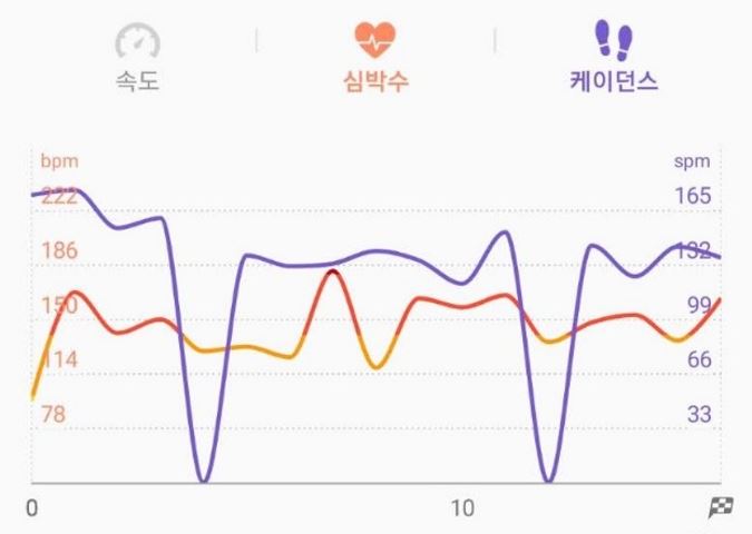 심박수가 185까지 올라가고, 보통 115 이상을 유지하고 있습니다.